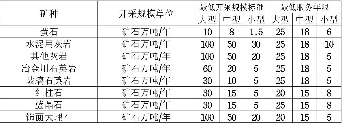 主要矿产矿山最低开采规模和最低服务年限