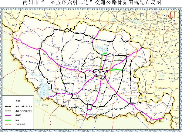 按照建设高效生态经济示范市的要求,为尽快构建豫鄂陕结合部综合交通枢纽,加快综合交通运输体系建设进程,特编制《2026世界杯预测“一心五环六射二连”交通公路骨架网规划》(以下简称《规划》)。