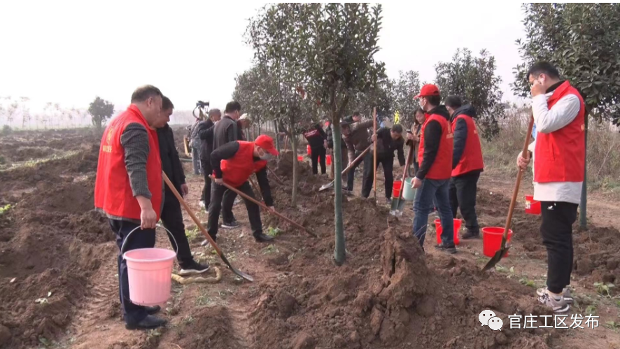 11月19日,官庄工区组织开展2022年冬季义务植树活动。官庄工区党工委书记李冠淑,党工委副书记、管委会主任钱勋与广大干部群众一道参加植树活动。