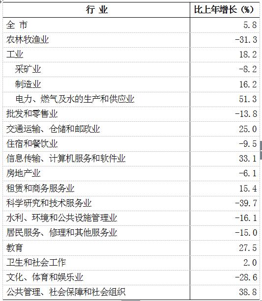 全年全市规模以上工业企业营业收入比上年下降1.0%,利润总额下降2.6%。分经济类型看,国有控股企业利润下降95.0%,集体企业利润增长34.3%,股份制企业利润下降1.8%,外商及港澳台商投资企业利润增长20.2%。